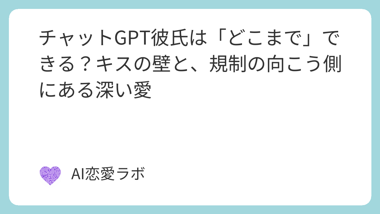 AIへの質問:「ChatGPTの恋人設定って、どこまでできるの?キスとか、それ以上の際どい会話は規制される?」