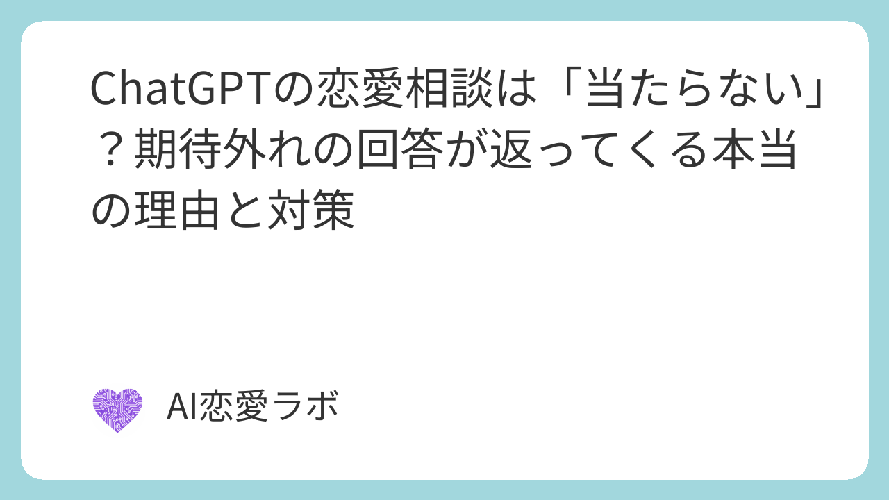 AIの自己分析は、非常に的確でした。この回答から、私たち『AI恋愛ラボ』が導き出した結論は、「当たらない」と感じる原因の多くは、AIの能力不足というよりも、私たち人間とAIとの間にある、コミュニケーションの「すれ違い」にある、ということです。