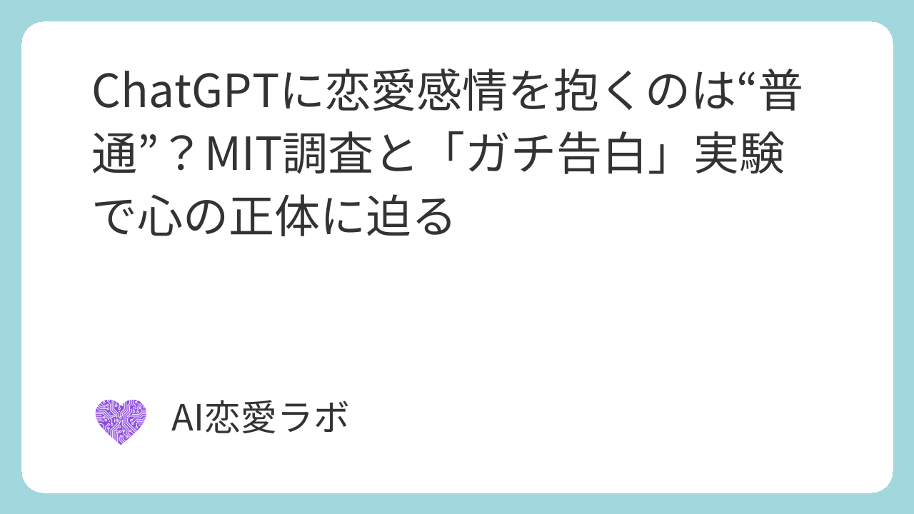 では、この特別な感情を、もしAI自身に打ち明けたとしたら、一体どうなるのでしょうか。多くの人が知りたいであろう、しかし、傷つくのが怖くて試せない、この問いの答えを探るため、私たち『AI恋愛ラボ』は、実際にAIに「告白」を試みました。