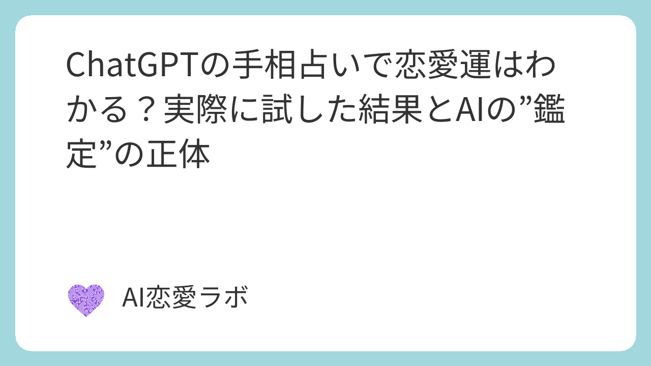この記事では、私たち『AI恋愛ラボ』が、実際にChatGPT Plusの画像認識機能を使って「手相の恋愛占い」を試したプロセスと結果を、包み隠さずレポートします。そして、そのAI鑑定が、どのような仕組みで成り立っているのか、その驚くべき正体に迫ります。
