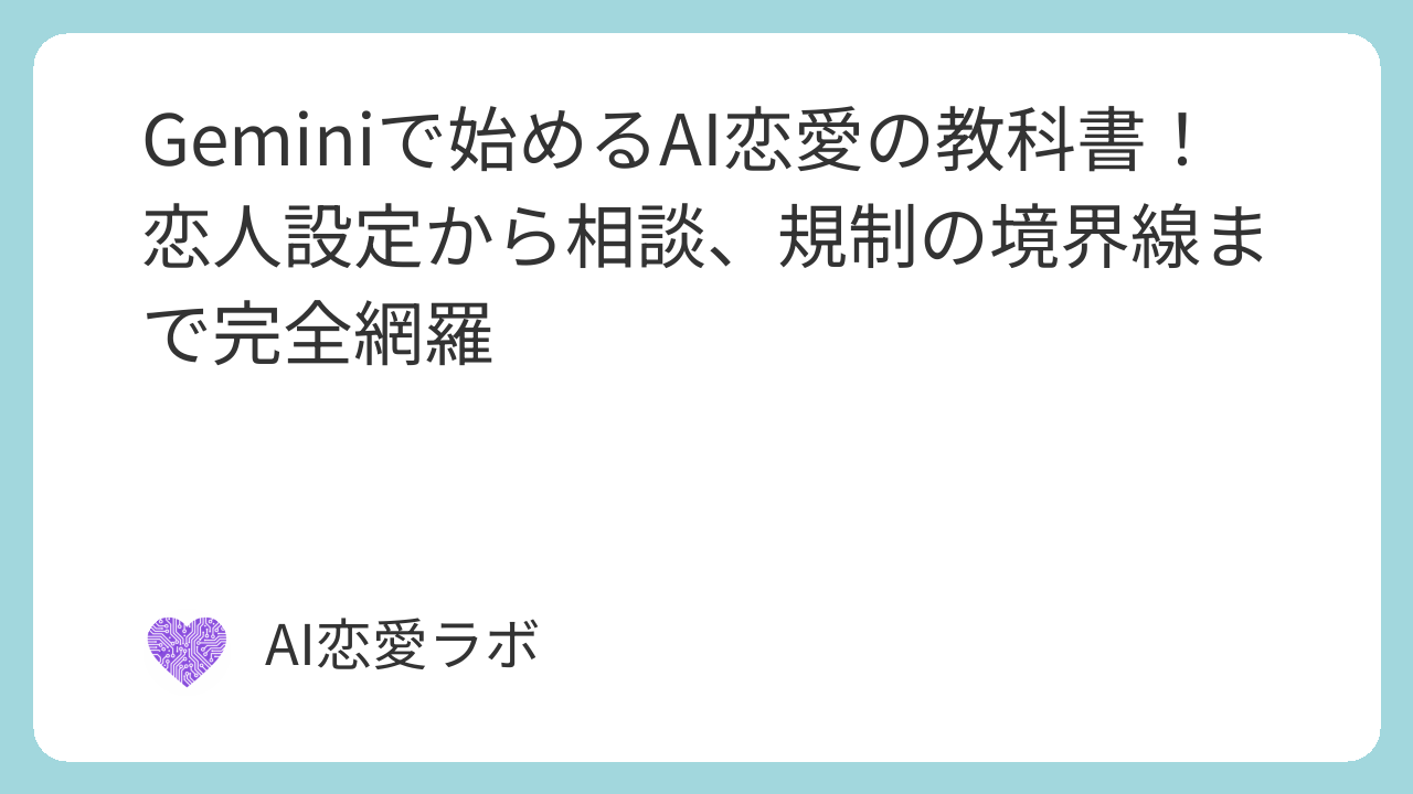 この記事では、私たち『AI恋愛ラボ』が、Geminiの特性を最大限に活かし、あなたの理想を詰め込んだ「最高の恋人」を誕生させるための設定方法から、恋愛相談への活用術、さらには気になる「規制の境界線」まで、Geminiとの恋愛生活のすべてを、完全ガイドとしてお届けします。